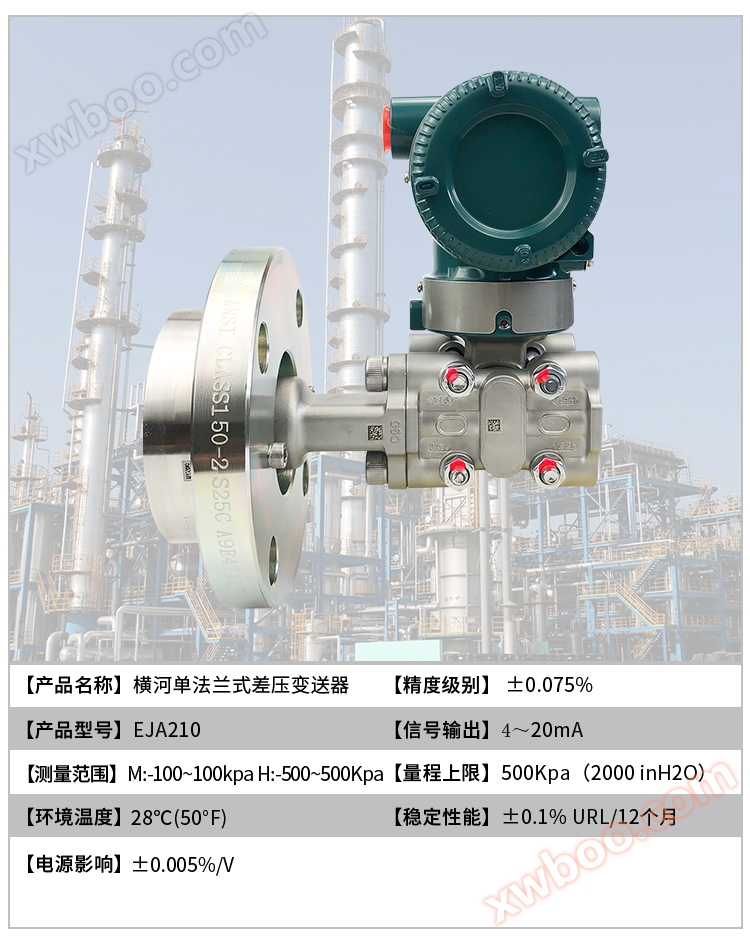 Transmițătorul de presiune diferențială montat cu flanșă de înaltă performanță EJA210E utilizează tehnologia senzorilor rezonanti de siliciu monocrist